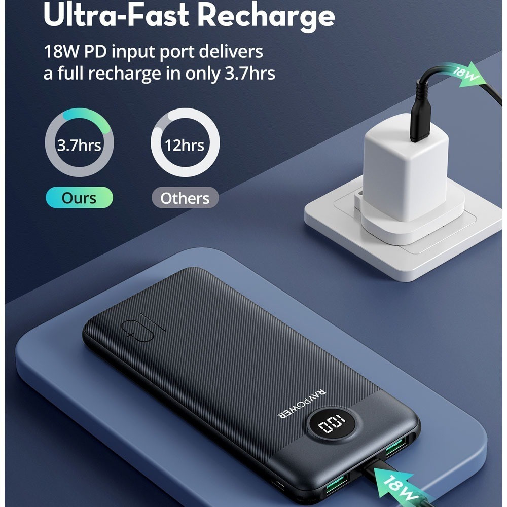 بطارية متنقلة راف باور بايونير 3 مداخل 20000 مللي امبير بقوة 20 واط - اسود