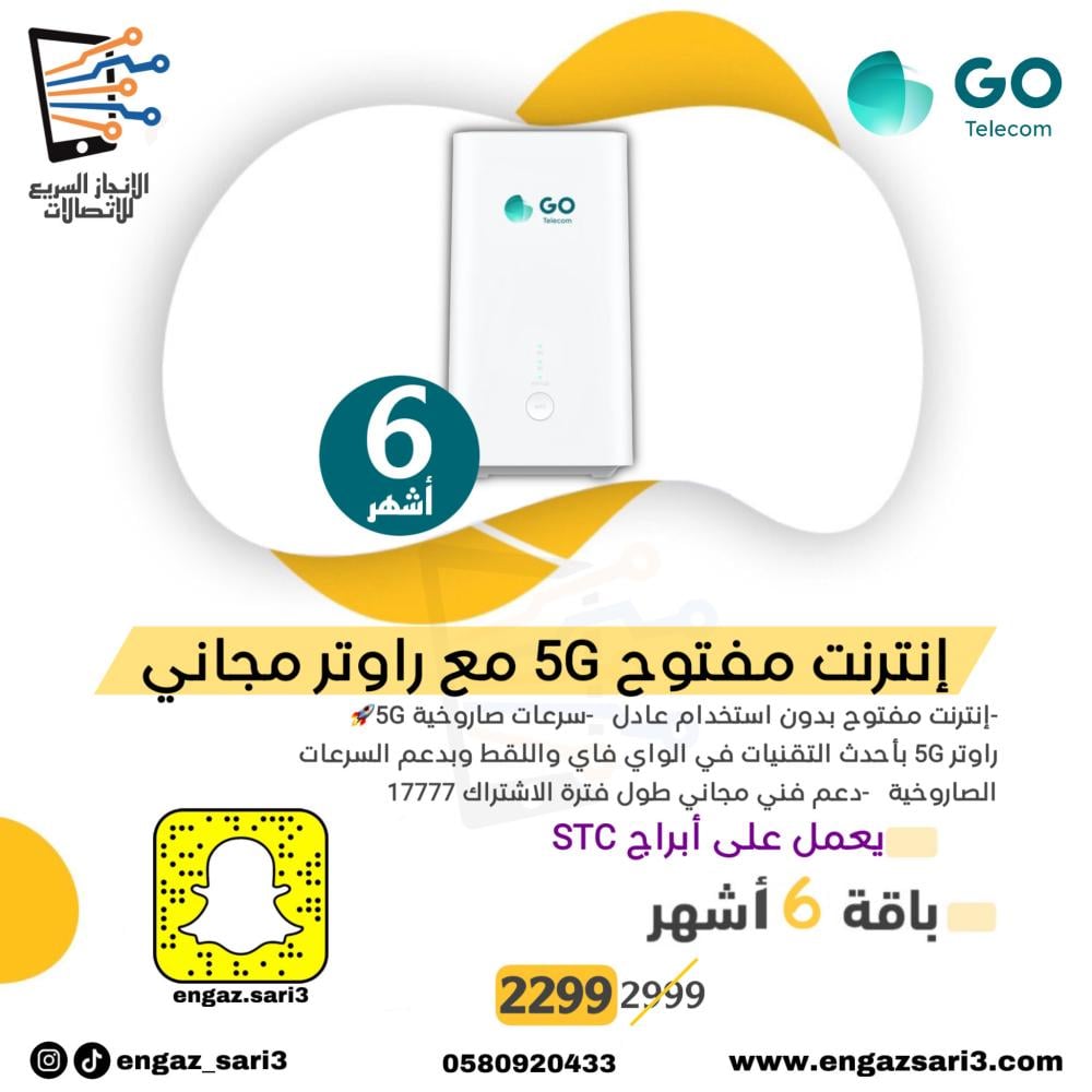 راوتر GO جو منزلي ٥جي 5G مع شريحة بيانات مفتوح 6 أشهر بدون استخدام عادل بسرعات صاروخية (على ابراجSTC)