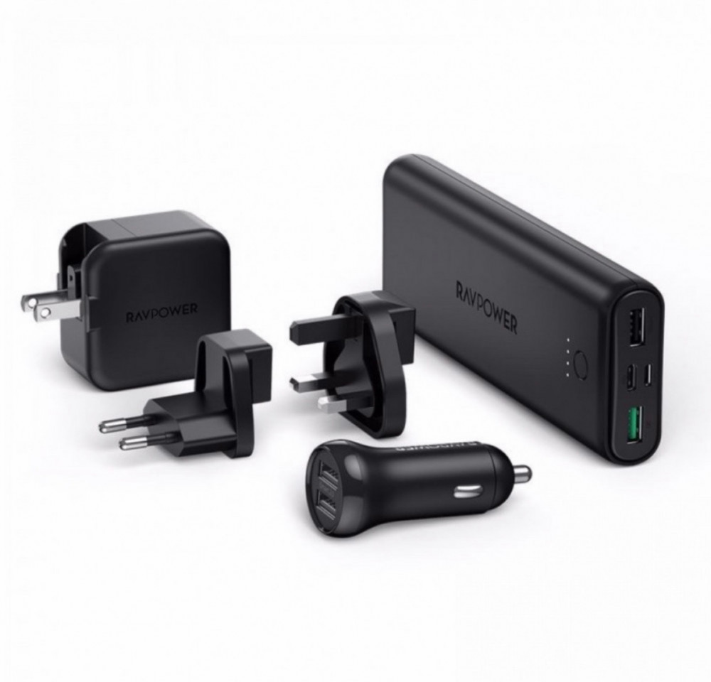 - 20100mAh شاحن متنقل بثلاث مخارج مخرج بي دي الشحن السريع ومخرج يو اس بي الشحن السريع والذكي ومخرج يو اس بي الشحن الذكي